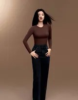 穿搭是此次写真的另一大亮点。紧身衣,尤其是短款设计,成为展现上身曲线的关键。它如同第二层皮肤,精确地描摹出肩线、锁骨与腰身的起伏。虞书欣选择了多种色彩的紧身单品,从经典黑白到柔和裸色,在不同光线下呈现细腻质感。而下身搭配的各类长裤则丰富了造型的层次——高腰阔腿裤拉长腿部比例,营造洒脱气场;修身牛仔长裤凸显笔直腿型,注入利落时髦感;垂感十足的西裤则带来流动的线条。这一上一下的搭配哲学,在“紧”与“松”、“露”与“遮”之间取得精妙平衡,将视觉焦点牢牢锁定在优越的身材比例和那堪称完美的小蛮腰上。